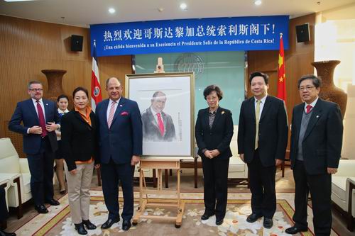书记靳诺、校长陈雨露以及其他校领导、外交部、教育部、国家汉办等相关单位负责人共同出席活动。我院高毅副教授创作的哥斯达黎加总统肖像,作为礼品由靳诺书记代表学校赠送给索利斯总统。