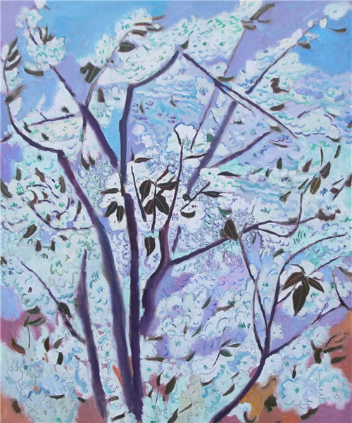王克举教授近期作品,视角从早期的叙事性逐渐转变成纯粹的秩序语言,不再困囿于局部笔触,而是以完成对整体节奏秩序框架的支撑为目的,同时利用感官性的色彩诱惑逐渐建立起自己的色彩谱系,看似眩目的色彩背后是一个纯粹的精神升华。王克举作品的结构排列有符号化的追求,这不同于一般写生画家只满足于表面的抒情,他想让不同的色彩、线条在一种抽象的内在秩序掌控下成为鲜明的符号,让他眼前自然景色成为自己心中的符号场。这种创造性的风景画,是借在场之际,直接面对自然寻找符号源,让在自然中创造的源生符号成为图像化时代的人文彰显。把塞尚式对风景的在场实验性与中国传统山水画的诗化冥想融为一体暗含中西文化交互的观看方式,既有在场体验的实验性,又具有转承人文情感的方法,它不仅转承着前人的观照方法,同时还将东西方艺术对自然的不同观看方式同时纳入自我的感觉支配中,让自然景象之中的在场成为现实感的即兴抒怀。