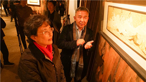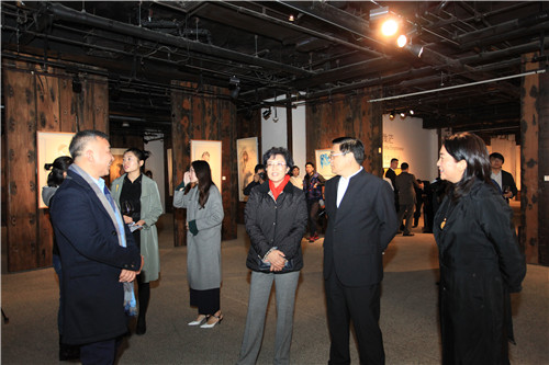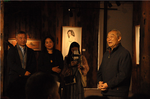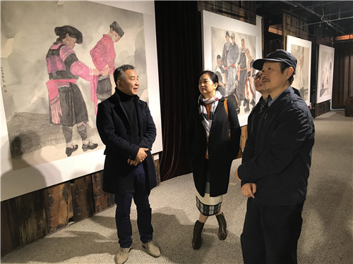 党委书记靳诺和中国美术家协会常务副主席、分党组书记、秘书长徐里与两位艺术家交流)