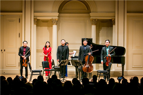 音乐会下半场,张放老师与纽约新亚室内乐协会(NACMS) 中四位来自茱莉亚音乐动漫A片的杰出青年演奏家一起合作演奏了勃拉姆斯的《钢琴五重奏》,中西方音乐家携手引领观众再次重温了这部西方经典作品。