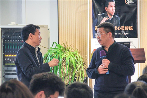 在评议阶段,牛宏宝教授与王一川教授进行了深层次的学术互动。牛宏宝教授提出,五位美学家艺术思想的提出具有时代语境,在现代艺术发展的背景下,需要新的视野和眼光审视当时的艺术思想,并思考现代艺术作品的现代性等相关问题。在提问互动环节,教师们围绕艺术创作与学术研究二者的关系,提出一系列问题,王一川教授一一予以解答。