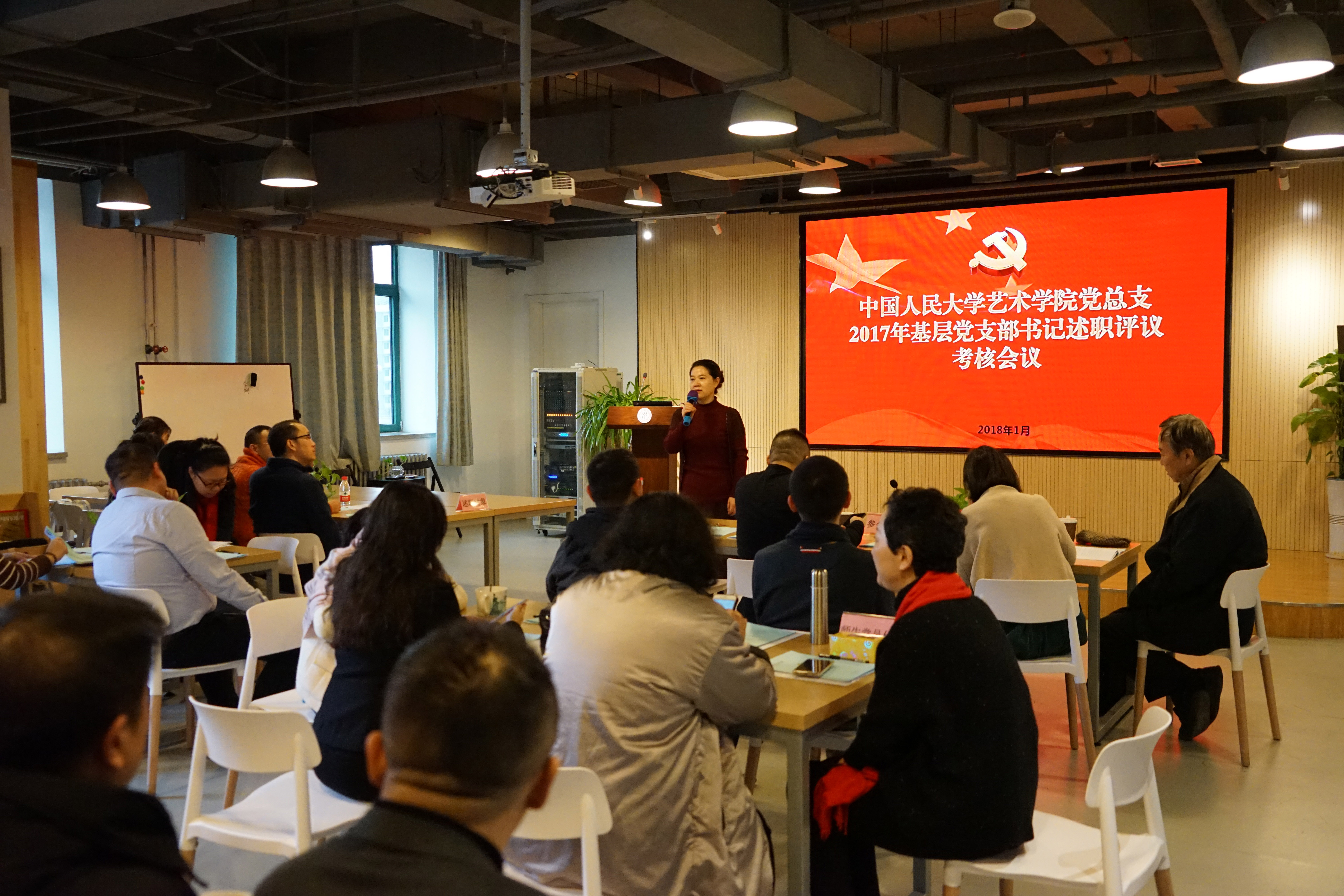 党总支书记王建就各支部书记的述职报告逐一进行了点评和总结。他指出,2017年各支部认真学习宣传贯彻党的十九大精神,深入推进“两学一做”学习教育常态化制度化,贯彻落实“三会一课”、“四个一”工程的基本组织生活制度,强化了师生党员的先锋模范作用,并且将艺术专业特色融入组织生活中,增强了党支部的吸引力和号召力。