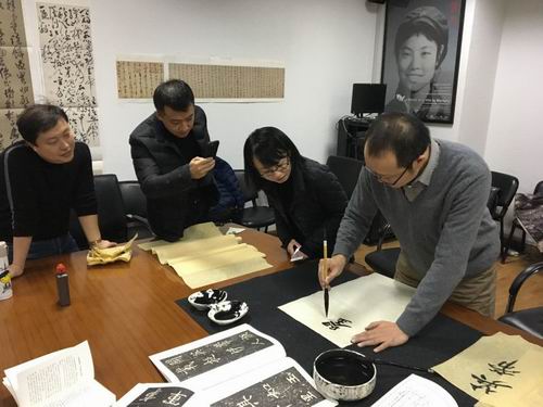 随后,各位老师就如何练习书法等问题展开了热烈的讨论。在刘老师的悉心讲解和演示下,老师们都积极动手尝试书写练习,专注投入的体验使大家深切地感受到与我院学科特点相结合的支部活动,能够收获更加生动鲜活的效果。
