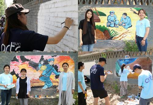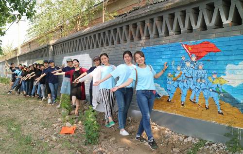 学生党支部于2017年5月17日前往昌平区阳坊镇西马坊村开展“红色1+1”活动,为西马坊村中心街西侧廊道绘制主题墙。本次活动由动漫A片党总支书记王建、副书记别敏、党总支委员顾亚奇老师带队。