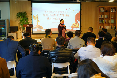 党总支书记王建就各支部书记的述职逐一进行了点评。他肯定了各支部党建工作的优势特色和经验举措,认为各支部能够严格执行上级党组织要求,主题党日活动、组织生活会规范化程度高,能够充分与艺术学科特色相结合,“两学一做”学习教育常态化规范化执行效果较好。同时,王建书记也对2019年基层党建工作提出新的要求,如教工党支部应继续加深理论学习深度,加大政治教育力度,使支部党员在思想上、行动上与党中央保持高度一致,同时,要与群众密切联系,更好地发挥教工支部的战斗堡垒作用。学生党支部应继续发扬高年级带低年级、党员学生带普通学生的优良传统,在党员管理上坚持从严要求、从严教育、从严管理、从严监督,筑牢思想防线,持续壮大党员队伍。