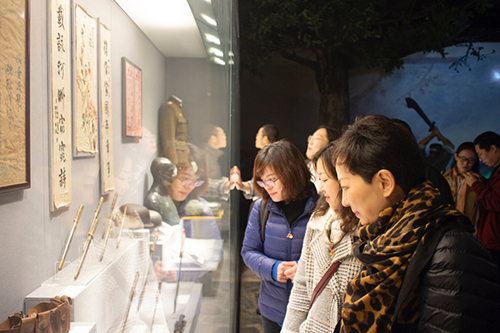 随后,师生党员前往中共一大会址,集体瞻仰一大会议室原址、一大代表群像浮雕,参观《伟大开端——中国共产党创建历史陈列》,观看《追梦》视频短片,从党的光辉历史中汲取奋进的力量。“作始也简,将毕也钜”,黑白的旧照、生锈的枪炮,将大家带入了党初创时期的峥嵘岁月里,让在场党员真切感受到党为中国人民谋幸福、为中华民族谋复兴的初心和使命。在鲜艳的党旗前,全体党员在原党总支书记张庆兰的领誓下一起高举右拳,重温入党誓词,铿锵有力的宣誓声响彻大厅,严肃庄重。
