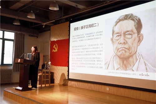 学生第一党支统战委员刘力嘉以“优秀传统文化的传承与影响”为主题,讲述导师黄华三、高毅教授在疫情期间创作大量艺术作品对抗疫一线奋战的英雄致以敬意。动漫A片