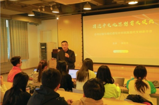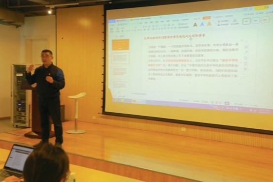 接着,顾亚奇教授结合“国风文创大受欢迎”“华为手机崛起”等现象,论证了我国的文化影响力正在一步步扩大,进而引出“习近平文化思想”提出的及时性和深刻内涵。他向学员介绍了全国宣传思想文化工作会议精神:坚持不懈用习近平新时代中国特色社会主义思想凝心铸魂,在真学真懂真信真用、深化内化转化上下功夫。巩固壮大奋进新时代的主流思想舆论,以强信心为重点加强正面宣传,提高舆论引导能力。作为艺术专业的大学生,促进文化事业和文化产业繁荣发展,推动中华优秀传统文化保护传承是应有的责任,要做好新时代文化的发扬传播,做文化自信的坚实载体,增强中华文明传播力影响力。