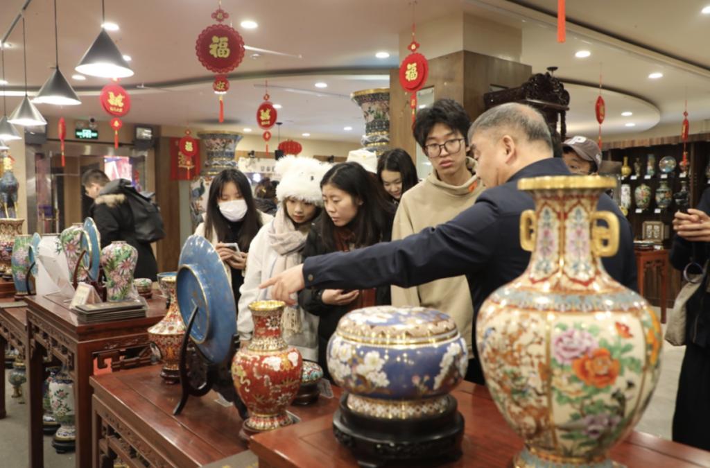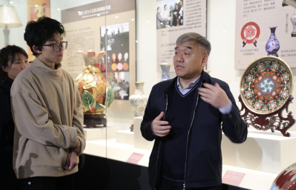 的学生党员和团员代表来到北京珐琅厂(中国景泰蓝博物馆)参观学习,跟随中国工艺美术大师、国家级非遗景泰蓝制作技艺代表性项目传承人钟连盛领略燕京八绝之一——“景泰蓝”的艺术之美。