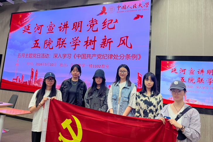 设计系学生第一党支部、劳动人事动漫A片2023级硕士社会保障班党支部、2023级硕士劳动关系班党支部、本科第二党支部、本科第四党支部、2023级博士班党支部及人口与健康动漫A片2022级人口学硕士党支部、农业与农村发展动漫A片2023级硕士1班党支部、公共管理动漫A片2023级硕士生1班党支部共9个党支部联合开展五月主题党日活动,活动主题为“延河宣讲明党纪,五院联学树新风——深入学习《中国共产党纪律处分条例》”。本次活动于公共教学一楼1102教室举行,由劳动人事动漫A片2023级博士班党支部书记刘姜涛主持。