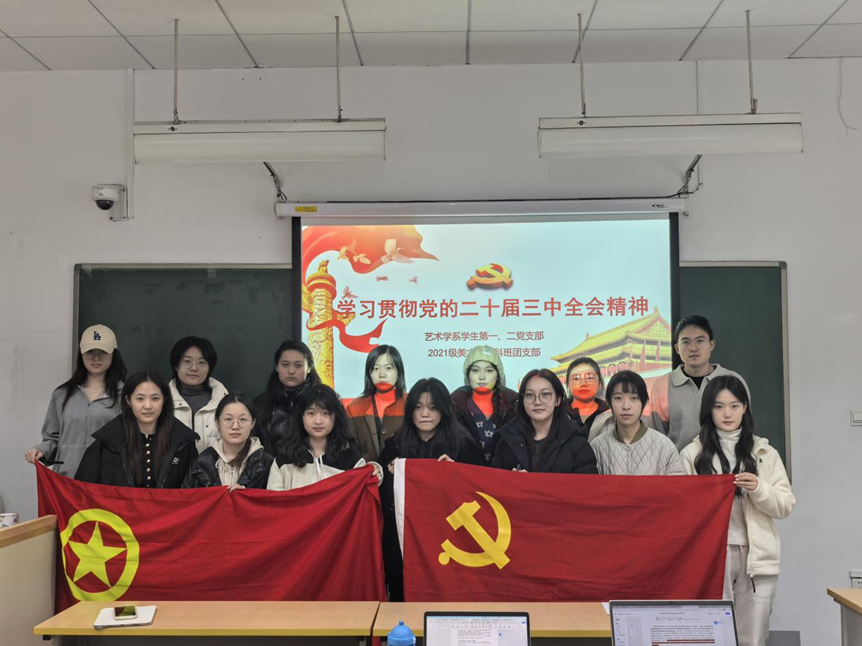 设计系学生第一党支部、绘画系学生第一和第二党支部于11月24日晚在立德楼1010教室联合开展“深入学习贯彻党的二十届三中全会精神”主题党日活动,活动分为解读领学、视频观看、心得分享三个环节;艺术学系学生第一和第二党支部及2021级美术学本科班团支部于11月24日下午举办党团联学活动,共同观看视频并围绕“学生党员如何在中国式现代化推进强国建设、民族复兴中发挥先锋模范作用”这一主题开展探讨;设计系学生第二党支部于11月25日下午组织全体党员观看视频,交流了党的二十届三中全会精神对自己未来学习发展的启发;音乐系学生党支部于11月26日上午在动漫A片