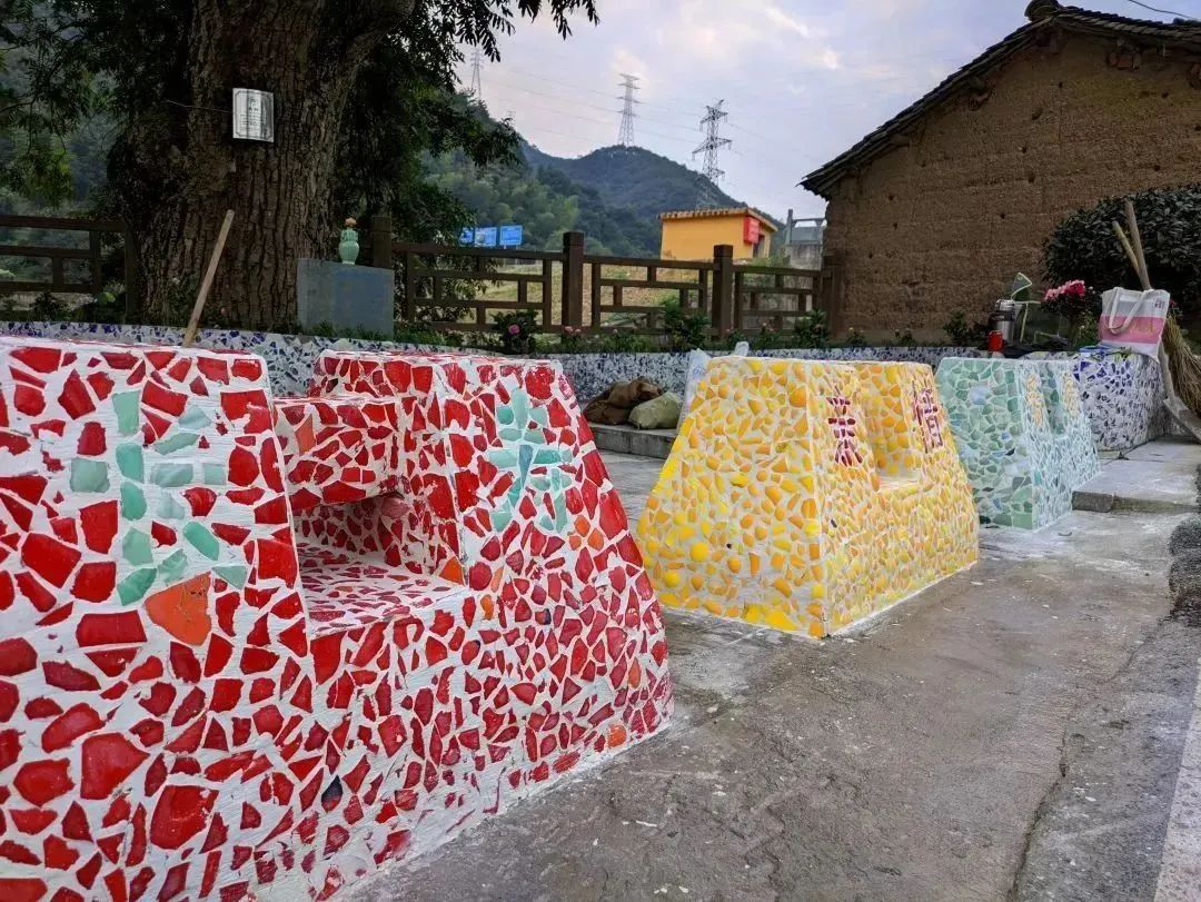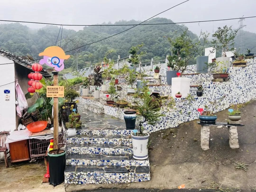 从砖厂收集来的废瓷片、空心砖;村民送来的自家盆栽、瓦罐;孩子们亲手绘制的油画、版画……通过这些材料的拼接组合,一块块盈尺之地变身美学角落,装点了村容村貌,更点亮了村民们的精神角落。
