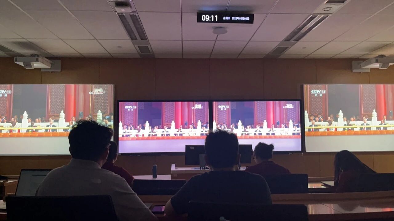 全体师生通过现场参与、集中观看、线上直播等多种渠道收看了大会实况,学习习近平总书记重要讲话精神,共同见证这一庄严时刻,深切感悟伟大抗战精神,同上一堂生动的“大思政课”。