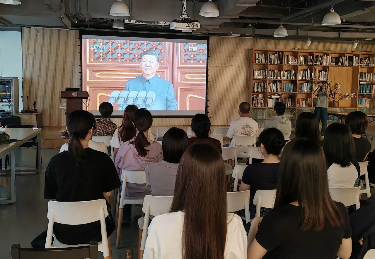 党委书记付春梅及师生党员代表在中关村校区530会议室集中观看,师生各支部、班级组织校内外师生自主收听收看。