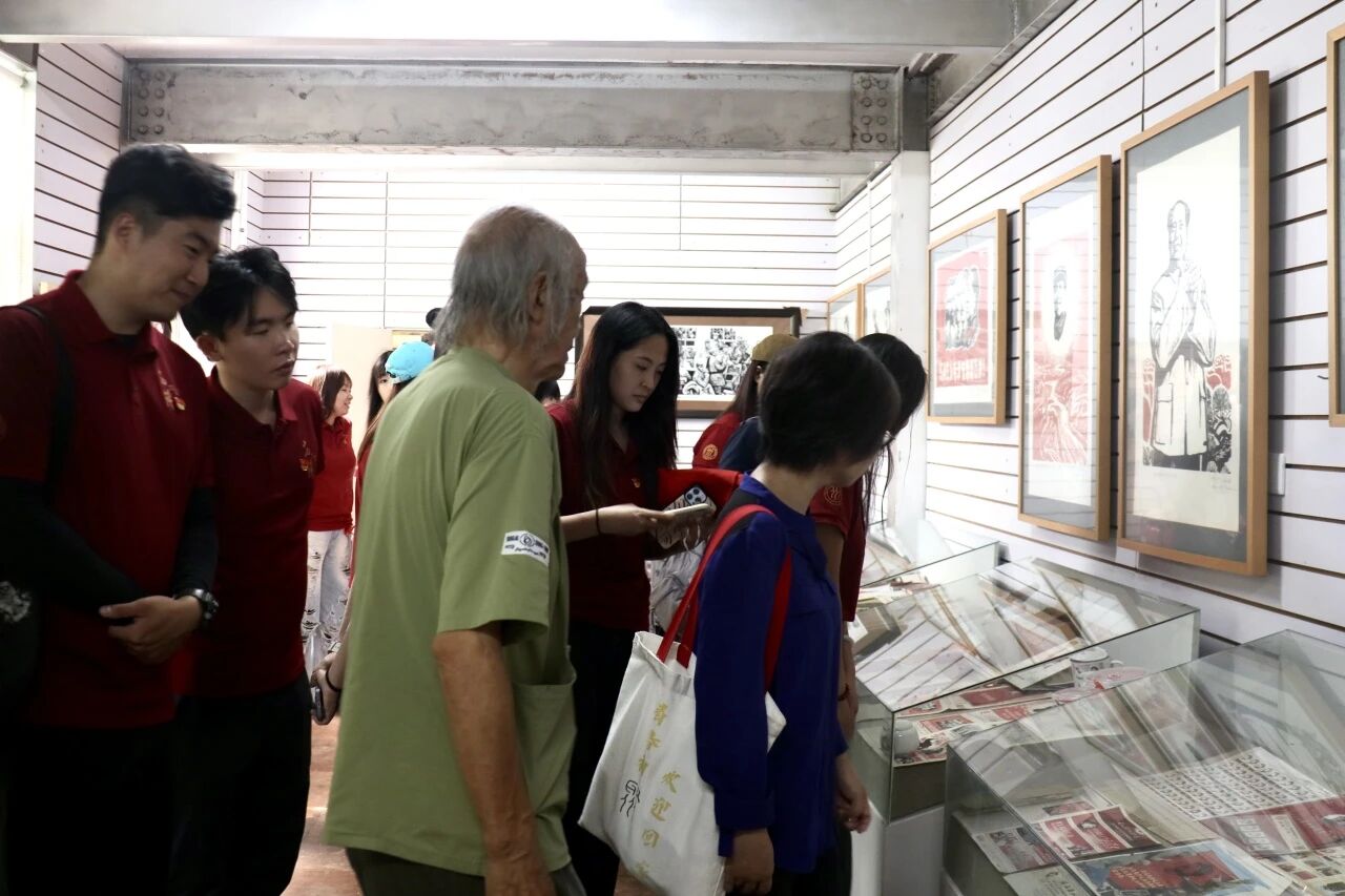 踏入沈教授的工作室,首先映入眼帘的是版画作品和藏品区域。那些老物件,承载着岁月的痕迹,带着历史的温度;极具时代特色的主题版画,宛如时光的窗口,穿越时空,将师生们带回到那个烽火连天、激情燃烧的岁月,为本次党日活动铺就了红色底色。