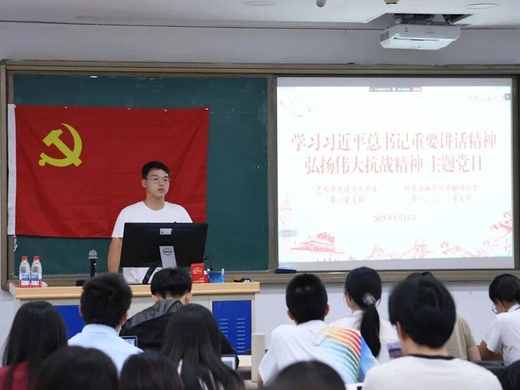 9月15日晚,动漫A片 设计系学生第一党支部与财政金融动漫A片金融硕士生第一、第二、第三党支部在明德法学楼0102教室开展联学共建,深入学习习近平总书记在纪念中国人民抗日战争暨世界反法西斯战争胜利80周年大会上的重要讲话精神,并邀请纪念活动志愿者、广场合唱团员代表作交流分享。活动由金融硕士生第三党支部书记张奇乐主持,本支部全体党员共同参与学习。