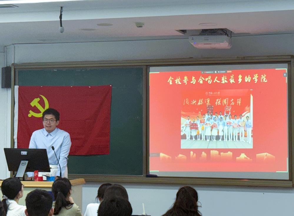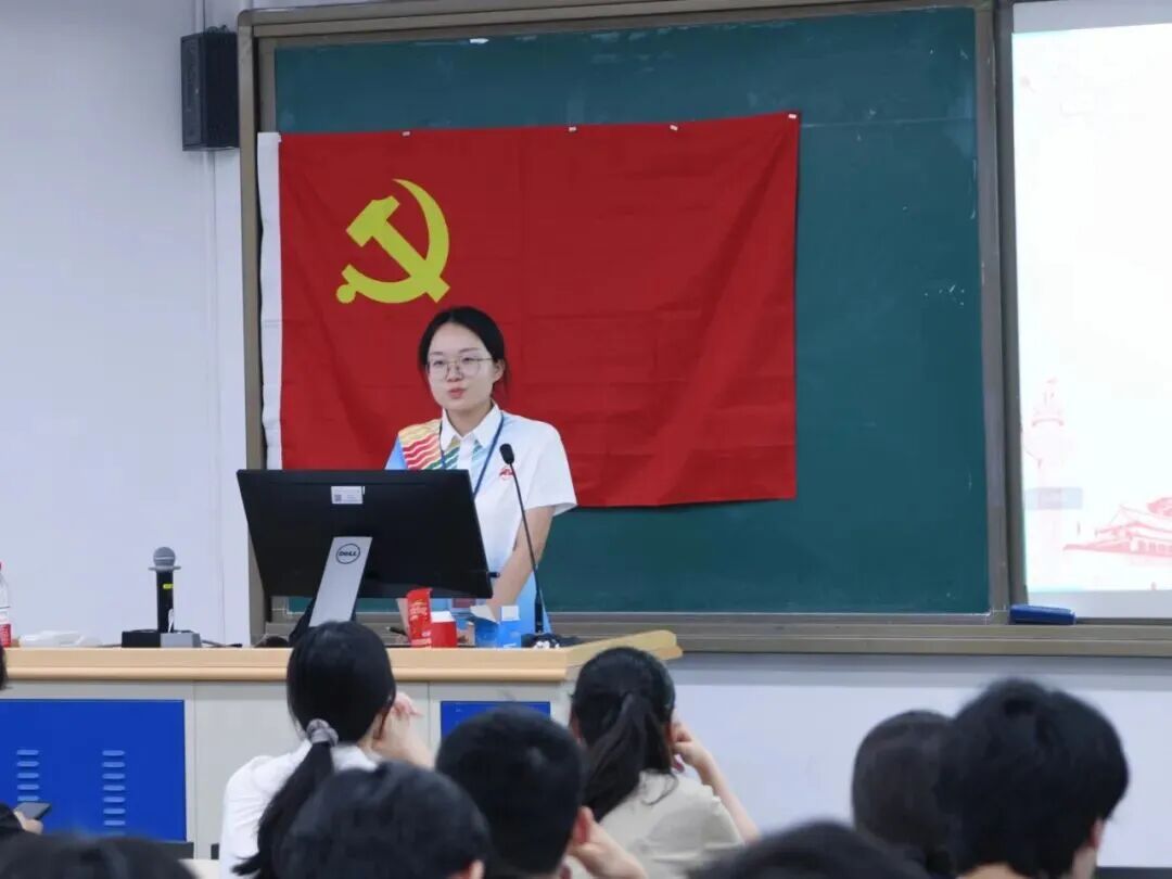 西南观礼台志愿者、哲动漫A片2024级硕士研究生孟祥和从培训期经历、观礼台见闻、志愿者感受三个方面分享自己的感悟和收获。他表示,无论专业、年级,每一位人大学子都传承着从陕北公学发源的红色基因,在不同的领域以过硬的专业能力服务中国式现代化建设,彰显了“让党放心、不负人民”的精神品格。孟祥和还以志愿服务中的趣事为喻,强调付出与收获之间或许存在时差,但努力奋斗终将迎来回响,并以此鼓励全体与会成员传承红色基因,以扎实作为躬身实践,响应“复兴栋梁、强国先锋”的时代号召。