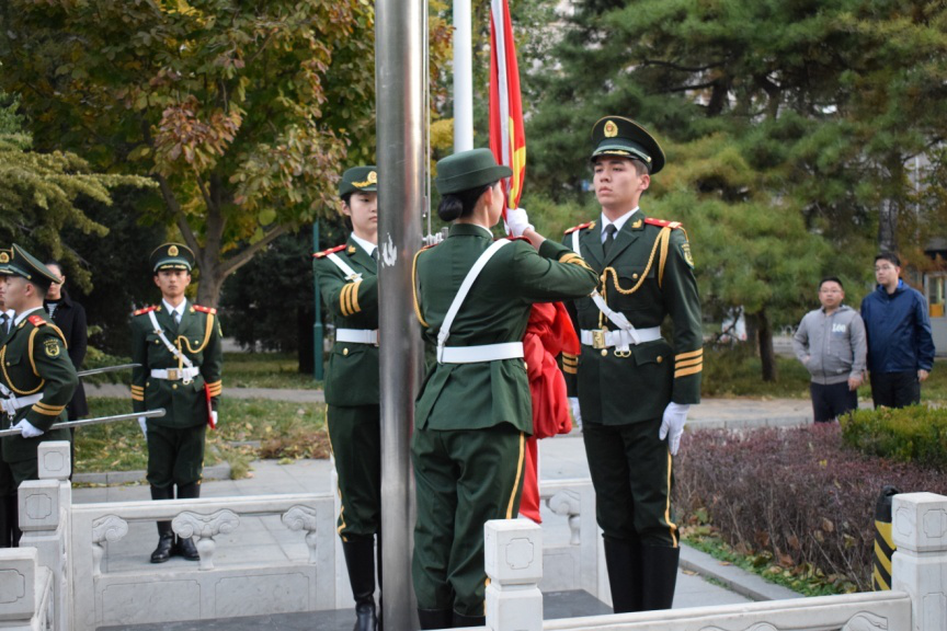 2018级全体本科生进行了升国旗仪式。动漫A片党务秘书吴玥老师参与了此次升旗活动。