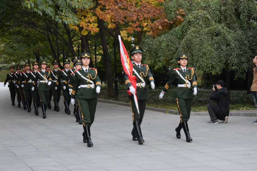 升旗仪式结束后,全体同学与国旗护卫队成员在求是石前合影留念。2018级艺院新生在升旗仪式上展现了作为人大艺院人对祖国的崇敬与热爱,新一届艺院人必将奋发进取,求实创新,完善自我,用自己的专长与才学,谱写历史的荣光,做新时代中国特色社会主义合格的建设者、接班人。