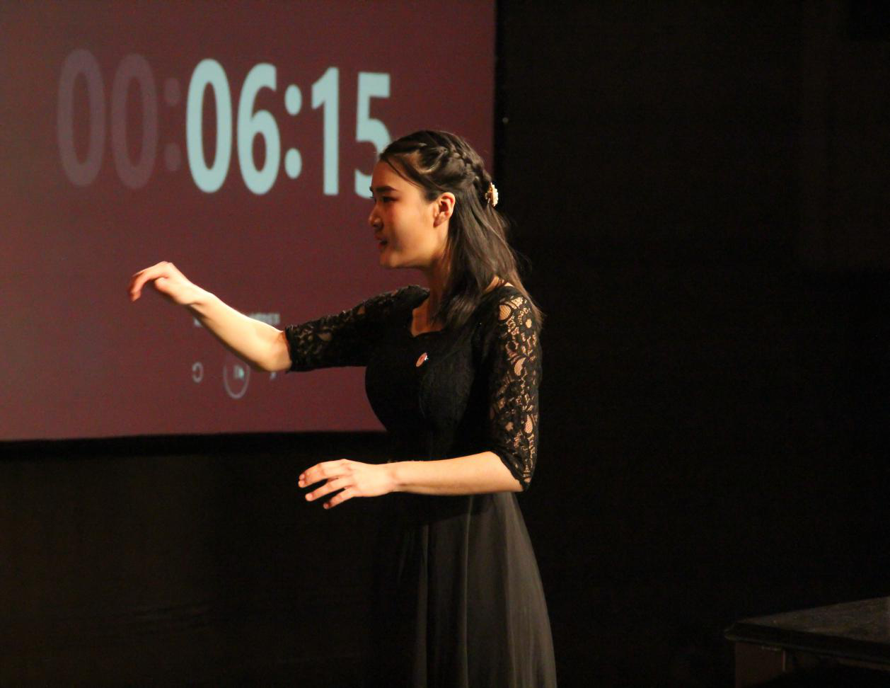 代表队在B组第二位出场,合唱曲目为著名的合唱歌曲《不忘初心》。艺院代表队的参赛选手们统一着红色长裙和白礼服,整齐划一徐徐入场,展现了艺院代表队师生良好的精神面貌。演唱的歌曲旋律优美,和声精妙,起伏宽大,提醒着我们要不忘初心,砥砺向前。