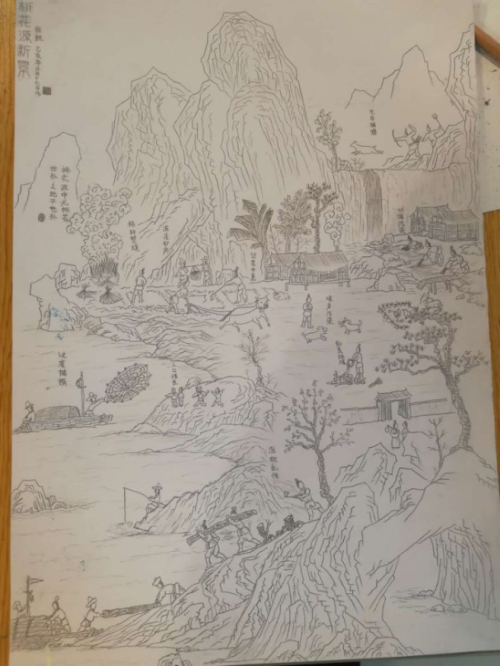 “我以《桃花源新景》为题,将传统山水与环保主题结合,是希望用铅笔简笔画的方式直观描绘一幅人们心中的圣地——桃花源在环境破坏下的图景。‘桃花源中无桃花,世外之地不世外’是我想表达的理念。桃花源是我们心中的圣地,在如今,如果我们不保护地球,任凭其收到破坏和污染,我们就可能失守最后一片桃花源,桃花源中就没有桃花,世外之地也不世外了。”