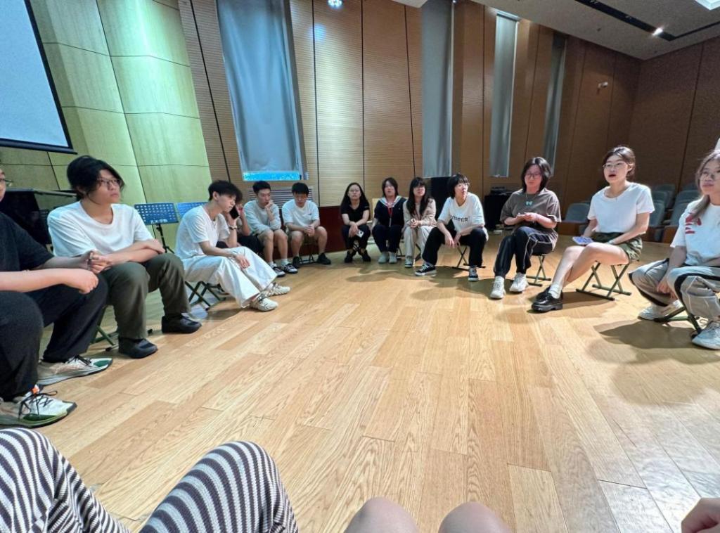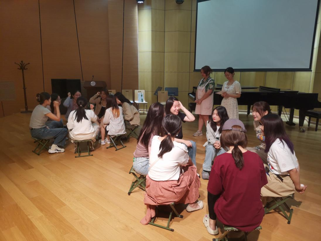 其次,同学们以六人为单位进行了小组活动,“情绪脸谱”、“我思我想”等项目引导大家将心扉缓缓打开,随后“听口令抓手指”“最开心与最遗憾”等活动,音乐厅萦绕着同学们欢乐的笑声。
