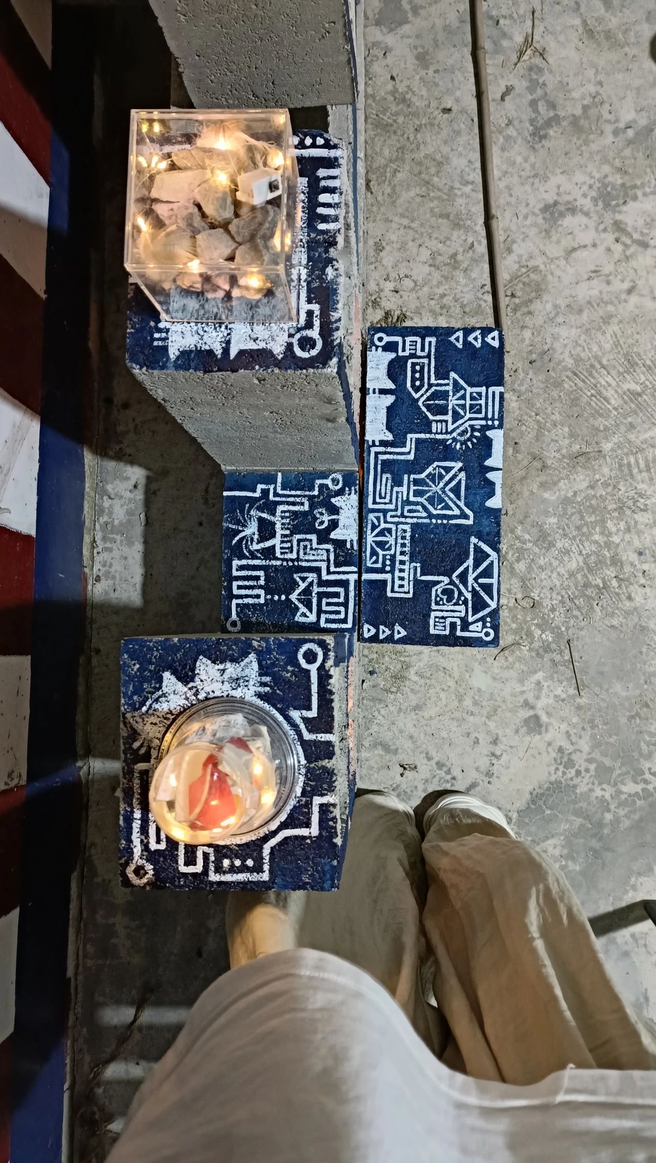2024年7月,跨越1400公里的距离,即将研一的王艺馨和王汝灏第一次跟随团队来到西圃村,开启了创建“美学角落”的奇妙之旅。从宁波火车站驱车一路向南,穿越高架上游走的蓝天白云,稳稳停在这座曾以制陶闻名的村庄。群山之间,古村之中,藏着团队成员与村民们用碎瓷片共创的充满故事的作品,它们像一个个彩色的精灵,映入两人的眼帘。