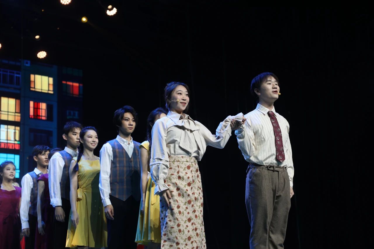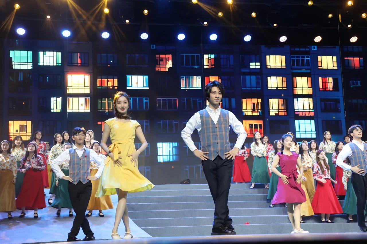 两个多月的坚守,一次次的练习,今日的圆满是老师和同学们共同努力的结果!每一次和声、每一次动作,艺院学子演绎了对文艺的坚定信念和真挚追求!聚光灯下,他们昂首挺胸、芳华尽显,带来属于那个年代的真情与思念。