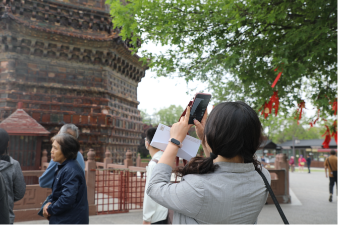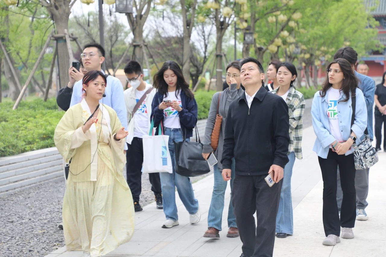 座谈交流结束后,实践团队与河南大学师生代表共同开展实地调研,将学术研讨延伸至文化遗产保护现场。在北宋铁塔这一千年文化地标前,实践团队成员深入探究文物保护与城市发展的共生关系。斑驳的塔砖纹理成为解读古代营造技艺的立体教材,檐角铜铃的回响引发对非遗活态传承的思考,传统园区与现代市集的有机融合则为文旅创新提供了鲜活案例。这场跨越时空的田野调查,使青年学子真切触摸到文化传承的时代脉搏,为文化遗产的创造性转化积累了宝贵的实证研究素材。