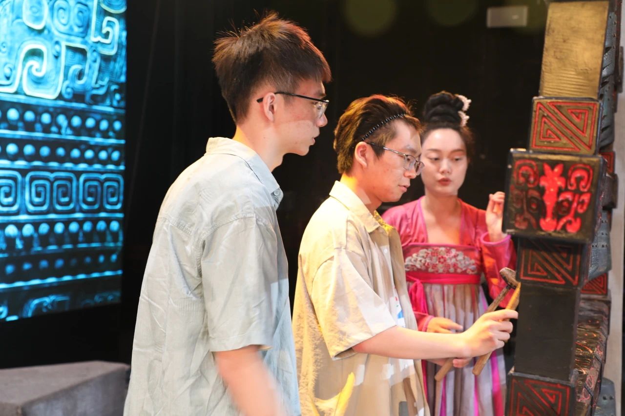 随后,实践团队聆听华夏古乐团使用复原古乐器演奏的音乐会。先秦礼乐的神秘庄重,《梅花三弄》的典雅悠长,《高山流水》的意境深远,无不展现着中华古乐的独特魅力。而古乐器演奏的流行曲目《孤勇者》,则以大胆创新的方式证明了传统音乐的生命力,赢得全场喝彩。演出结束后,团队师生与表演人员进行交流、学习,体验古乐器的魅力。