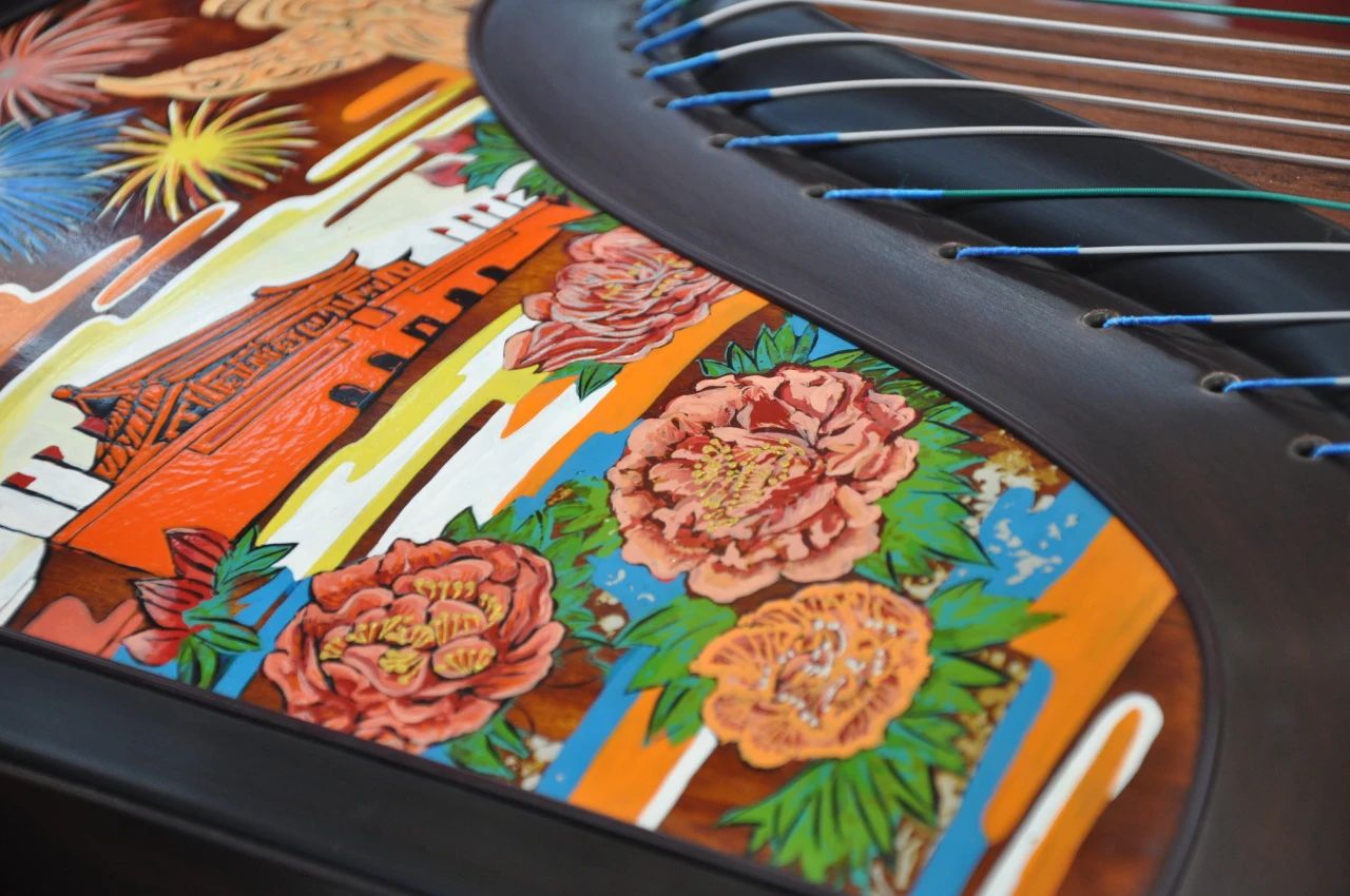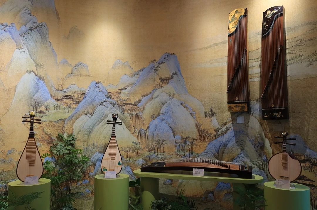 在国乐艺术馆中,一件件精美的乐器讲述着中国工匠的智慧与坚守,不同样式的花纹与形制包含着创新与发展。敦煌牌乐器融合敦煌壁画元素,打造民族乐器一流品牌,引领国风新潮,同时又与多方文化品牌与符号开展联名,推动文化产业蓬勃发展。