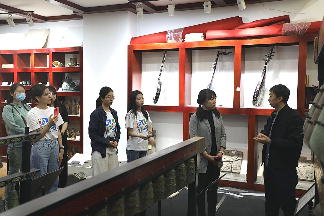 4月29日,实践团队赴河南省博物院,与省博保护与传承部门、华夏古乐团负责人开展座谈交流,就古代乐谱的破译、乐器的复原等话题开展热烈讨论,聚焦于如何让考古发掘的史料真实地活起来,让古谱上的音符和谐地动起来,让历史的旋律赓续下去。河南省博物院华夏古乐团不断地在传承与创新中汲取养分,通过乐器复原、表演实践、新媒体宣传等让大众聆听千年古韵,推动中华古典音乐的融合发展。经过深入的探讨,实践团队受益匪浅,对民乐的传承发扬又有了新的认识。
