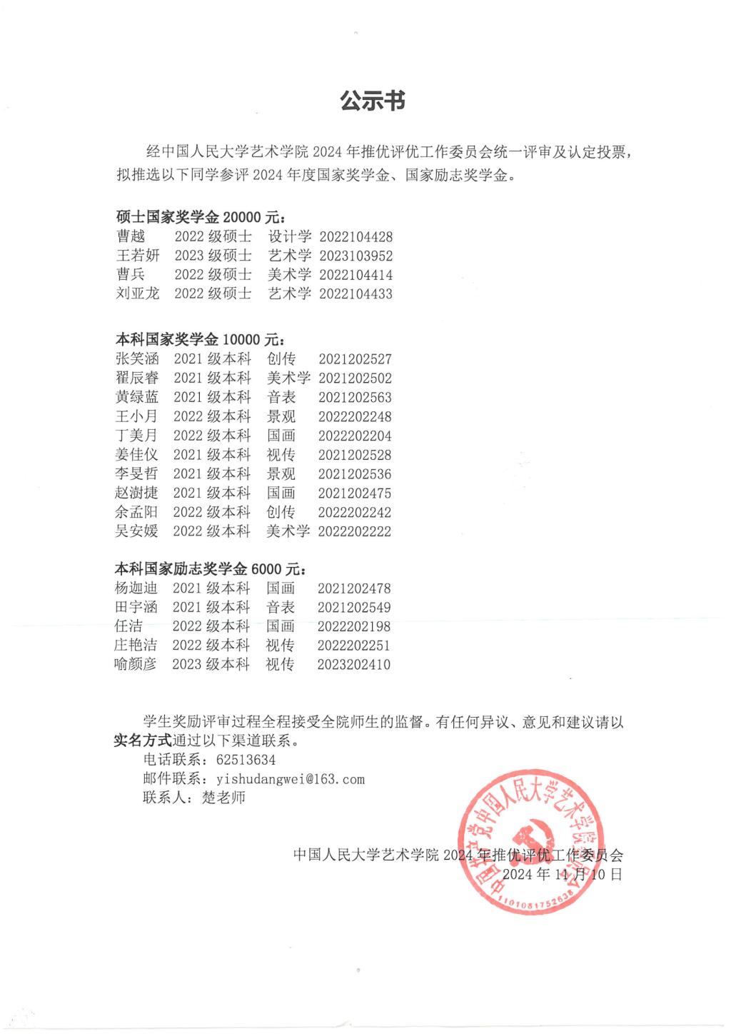 动漫A片 2024年年度国家奖学金、国家励志奖学金推优名单公示