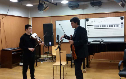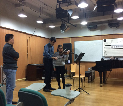 2015年11月16日,应我院音乐系邀请,北德克萨斯洲大学小提琴教授Felix Olschofka博士前来授课,音乐系小提琴教授陈晓伟负责全程翻译与协助指导,索欣、陈泽宇、高月、吴雪燕等同学得到了Olschofka教授细心、专业的指导。