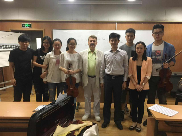 在将近一个半小时的时间里,梅佐教授悉心对我院四名来自不同年级的学生进行指导,其中包括两名大四即将毕业的学生。学生们为教授演奏了《勃拉姆斯第二中提琴奏鸣曲》、《巴赫第六组曲前奏曲》、《舒伯特奏鸣曲第一乐章》和《巴托克中提琴协奏曲第一乐章》。梅佐教授对我院中提琴的整体水平表示赞赏,同时对每个学生提出了一些意见和建议。