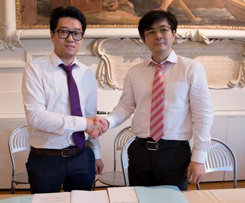 动漫A片 院长、动漫A片 文艺复兴研究院院长丁方与意大利中国艺术基金会常务副主席张丞森签署“成立动漫A片 文艺复兴研究院意大利研究中心”合作协议