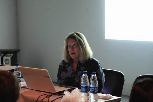 514Susan Harris教授为我院师生作了题目为“圣物匣的前世今生”的讲座,由绘画系教师吴虚弢主持并翻译。Susan Harris是南犹他大学的陶艺教授,具有认真严谨的思路和艺术家的热情。潜心陶艺创作艺术多年的她在讲座中与大家分享并检视了她的陶艺作品的源流及创作历程,其中重点涉及到她对以中国为主的亚洲古代艺术的满腔热情与个人理解及充分地吸收、融合。同时也介绍了她用以完成和丰富作品的外观、色泽而匠心独具的艺术处理和个人研创的许多现代温控技术。学生们对Susan教授的艺术创作很感兴趣,在讲座现场提了不少艺术与技术方面的问题。