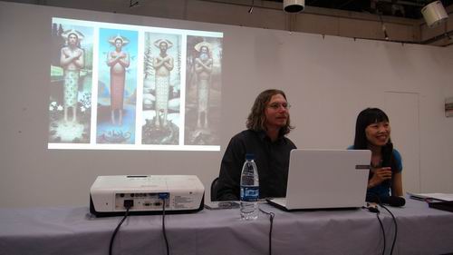515Brian Hoover教授作了题目为“旅程和梦”的专题讲座,由绘画系教师郭轶丹主持并翻译。Brian是南犹他大学的油画和版画教授,他的艺术创作与他的梦境息息相关,他在讲座中展示了渗入到他独特的、高度象征性的艺术作品的影响、手法和理念。Brian教授的作品把抽象与具象完美地融合,高度关注个人的内心与精神世界,体现了一个比较纯粹的艺术家生活与创作的内在紧密联系。前去听讲座的学生对他的作品和理念都很感兴趣,现场气氛活跃热情,探讨涉及到创作理念、艺术与生活的关系、艺术流派和精神建构。