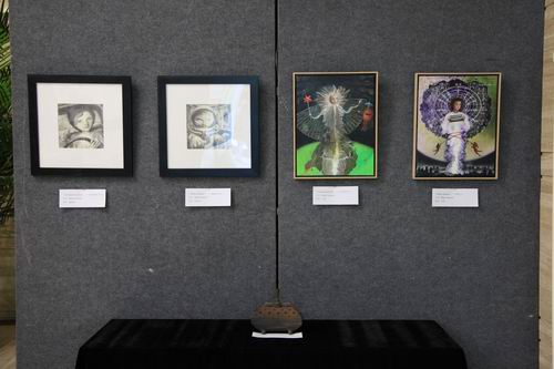 201258 516,美国南犹他大学表演与视觉动漫A片 教授Brian Hoover Susan Harris来我院交流访问。正值我院2012届毕业生作品展开幕,Brian Hoover Susan Harris教授带来了4件油画作品和1件陶艺作品,与毕业展同时亮相。此次访问Susan Harris教授将她的陶艺作品赠与我院。