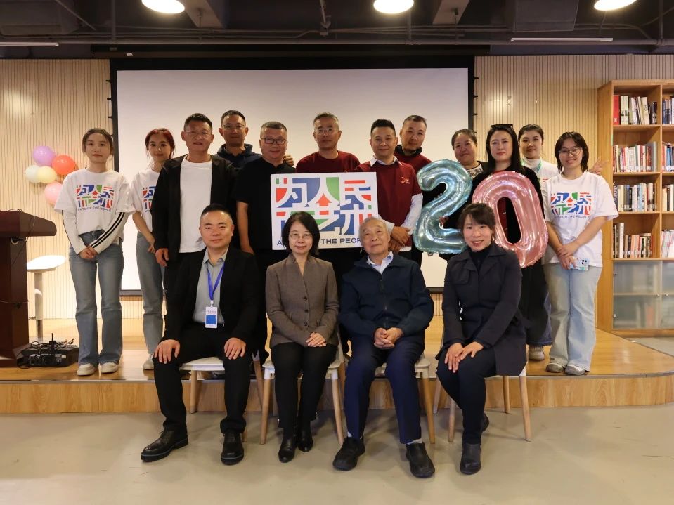 首任院长徐庆平先生,退休教师许俊老师,现任党委书记付春梅,党委副书记李晰,现任教师葛勇老师,团委负责人楚康宁出席活动,共同回顾二十年来的光辉岁月,畅叙师生情谊。