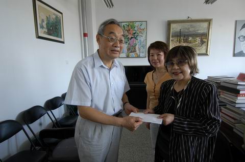 我院艺术设计系兼职教授、日本纺织设计协会理事长、日本多摩美术大学名誉教授渡部裕子在来我院授课期间,向四川灾区捐款人民币3000元,祝愿灾区人民早日走出困境,开始新的生活。