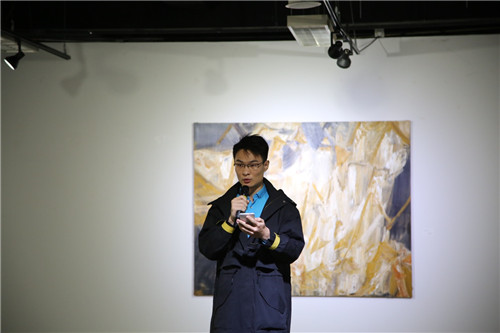 最后,2015级油画专业第一工作室学生吴桐代表参展同学们做了发言,在感谢老师的教诲和引领的同时,他表示在接下来的学习中会继续努力,“不忘初心”,向艺术的更深处挖掘和探索,力争未来在专业上能有所建树。