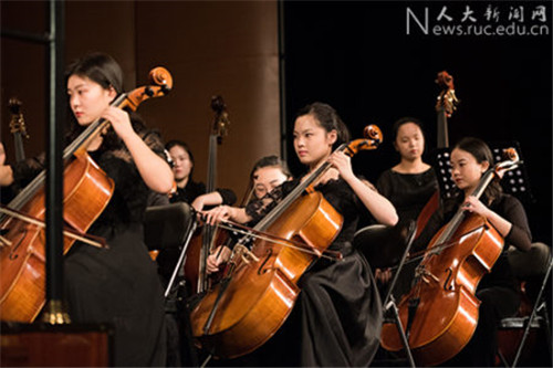 音乐比赛获奖学生代表先后联合演奏了莫扎特《降E大调交响协奏曲第三乐章》、贝多芬《第五钢琴协奏曲第一乐章》、格里格《a小调钢琴协奏曲第一乐章》等经典曲目,激越昂扬的乐章为现场观众带来了一场视听盛宴。在男高音独唱《延安颂》的豪迈歌声中,整场音乐会掀起高潮,大气磅礴的旋律生动再现了延安精神鼓舞人心的战斗气息。《默默静听》二重唱、歌剧《卡门》选段、《爱情像一只自由小鸟》、《蓝色多瑙河》等曲目以精湛的演奏技艺和动感的美妙音符,向全校师生传递了新年的美好祝福。最后,和着全场观众整齐划一的鼓掌节拍,在返场曲目《拉德斯基进行曲》动感欢快的乐声中,音乐会落下帷幕。