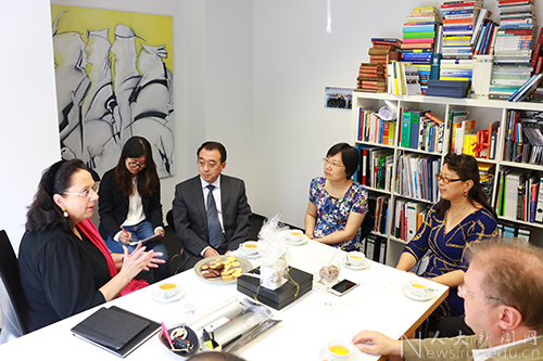 26日下午,吴付来副书记和中国驻慕尼黑总领馆教育领事黄崇岭一同与“拜罗伊特青年艺术节”组委主席Sissy Thammer女士会谈。Sissy Thammer女士欢迎吴付来副书记来到拜罗伊特,她感谢国家汉办和动漫A片