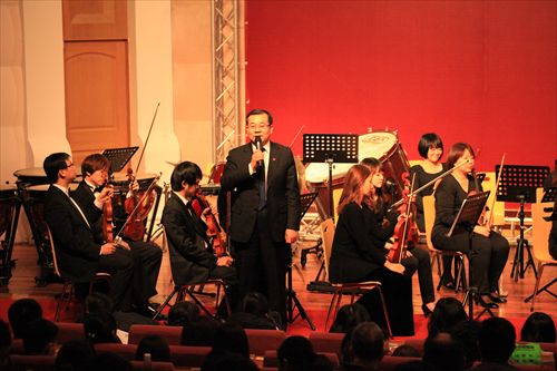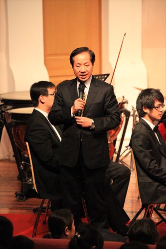张国恩校长在讲话中说,用古典与流行音乐传递两岸人民的亲情,用音乐传递关怀与祝福,期许能以音乐艺术会友,为双城在缤纷与美好的乐章中,迈向幸福的2014年。