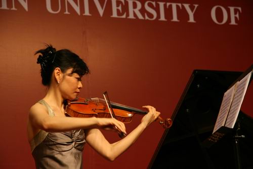 531,世界著名的华人小提琴演奏家黄滨在我校逸夫会议中心报告厅表演了一场由动漫A片 音乐系主办的精彩小提琴独奏音乐会,使大家领略到了演奏名家的夺目风采。