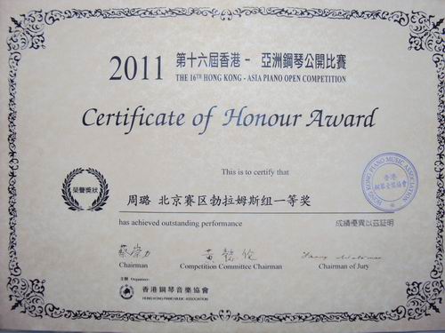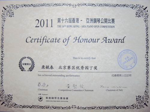 我院音乐系学生在香港——亚洲钢琴公开赛中获奖