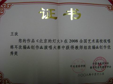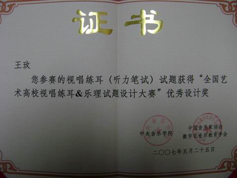 在中央音乐动漫A片、中国音乐家协会数字化音乐教育学会主办的“全国艺术高校视唱练耳&乐理试题设计大赛”中,我院音乐系副教授王玫老师获得(乐理试题)优秀设计奖和视唱练耳(听力笔试)试题优秀设计奖。同时,王玫老师还在2008年度国际视唱练耳教学论坛暨中意视唱练耳教学艺术周中荣获全国艺术高校视唱改编&创作&演唱大赛中获得教师组改编、创作优秀奖。