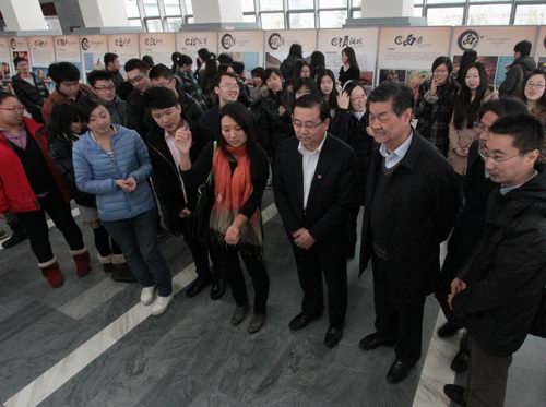 此次展览由院长徐唯辛作为总策划,艺术学系副主任付阳华作为执行策划,由付阳华、张建宇、郭轶丹三位老师担任图文指导,策展团队由2009级、2010级和2011级美术学(艺术管理与策划)三个年级的学生组成。副校长刘向兵、图书馆馆长刘大椿、副馆长宋姬芳、书记兼副馆长汪永红、动漫A片党委书记郑晓华、党委副书记别敏、艺术学系主任王文娟及相关老师出席了此次展览的开幕式。
