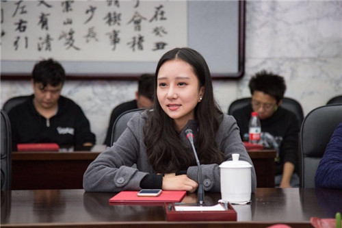 表彰环节结束后,同学们分享了校庆工作的心得体会。艺术学系2016级本科生白津歌同学作为校庆墙绘团队代表,向大家讲述了校史墙绘的构想思路和创作过程。作品以全景式构图展现了人大的恢弘气势,在传统风景画的基础上融入时空理念,把陕北公学、联合大学、华北大学布置在同一画面上,以类似蒙太奇的方式展现人大的悠久历史。作品得到观众的认可与好评,成为校庆期间一处崭新的文化景观。